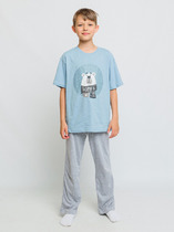 Трикотажная пижама из натурального хлопка. Джемпер с длинными втачными рукавами и брюки с эластичной резинкой в поясе. Мягкие манжеты на рукавах и по низу брюк. Оригинальная набивка выполнена из стойких текстильных гипоаллергенных красителей. Изделие сохраняет цвет и форму после многократных стирок. Все трикотажные полотна производятся в соответствии с нормами швейцарского сертификата ЭкоТекс.