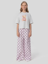 Тёплая пижама с начёсом из натурального хлопка. Джемпер с длинными спущенными рукавами и брюки с эластичной резинкой в поясе. Мягкие манжеты на рукавах и по низу брюк. Оригинальные набивка и принт выполнены из стойких гипоаллергенных текстильных красителей. Изделие сохраняет цвет и форму после многократных стирок. Все трикотажные полотна производятся в соответствии с нормами швейцарского сертификата ЭкоТекс.
