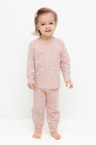 Пижама для девочки из натурального хлопка. Джемпер с длинными втачными рукавами и брюки с эластичной резинкой в поясе. Мягкие манжеты по низу брюк сделаны из материала в рубчик. Оригинальная набивка и принт выполнены из стойких текстильных гипоаллергенных красителей. Изделие сохраняет цвет и форму после многократных стирок. Все трикотажные полотна производятся в соответствии с нормами швейцарского сертификата ЭкоТекс.