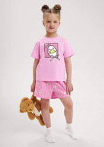 Трикотажная пижама из натурального хлопка. Удлиненная футболка с оригинальным принтом и спущенной линией плеч. У бридж в комплекте мягкий, эластичный пояс на резинке. Оригинальная набивка выполнена из стойких, гипоаллергенных текстильных красителей. Комплект сохраняет цвет и форму после многократных стирок. Все трикотажные полотна производятся в соответсвии с нормами Швейцарского сертификата ЭкоТекс.