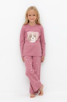 Пижама из трикотажа в рубчик для комфортного сна и отдыха. Эластичная футболка с короткими рукавами и широкие брюки с мягкой резинкой в поясе. Комплект изготовлен из 100% натурального хлопка. Материал приятен к телу, не теряет форму и позволяет коже дышать. Оригинальный рисунок выполнен из стойких текстильных гипоаллергенных красителей. Все трикотажные полотна производятся в соответствии с нормами швейцарского сертификата ЭкоТекс.