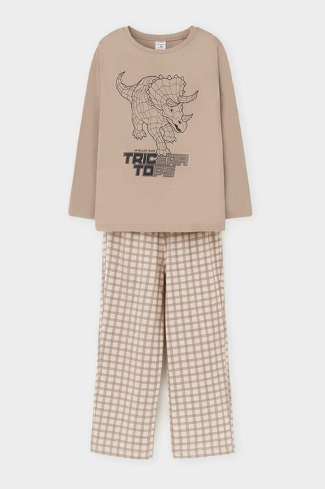 Crockid пижама для мал К 1600/темно-бежевый,клетка