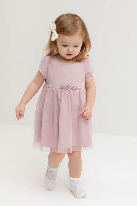 Нарядное платье с боди для девочки. Изготовлено из высококачественного хлопкового трикотажа супрем. Поверх юбки лёгкая сетка. Удобные застёжки расположены на спинке и по низу изделия. Спереди украшено декоративными розочками. Изделие сохраняет цвет и форму после многократных стирок.