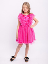 Нарядное белое платье с воздушными рукавами-крылышками для девочки. Изготовлено из атласа и сетки с блеском. Для удобства одевания платье застёгивается на пуговицы на спинке. С помощью бархатной ленты можно регулировать ширину изделия по талии. Платье сохраняет форму и стойкий цвет после многочисленных стирок и идеально подходит для праздников и фотосессий.