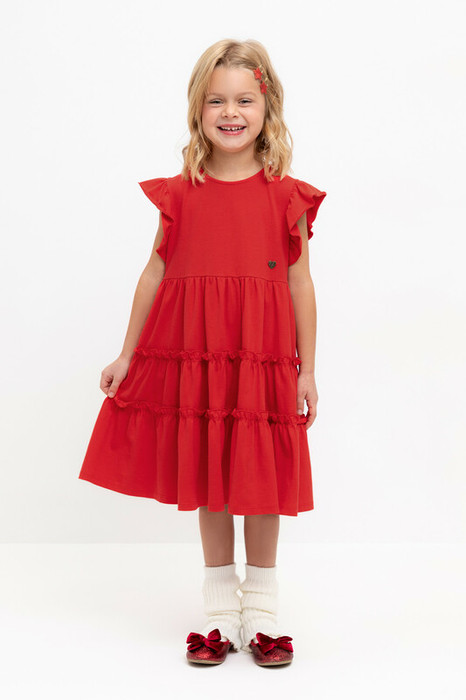 Платье с ярусами для девочки из высококачественного трикотажа супрем. Верх украшен изящными крылышками. Для удобства одевания платье застёгивается на пуговицу на спинке. Платье сохраняет форму и стойкий цвет после многочисленных стирок и идеально подходит для праздников и фотосессий.