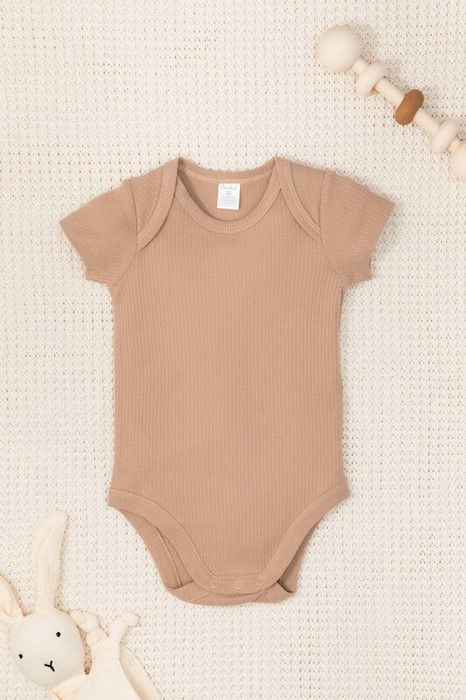 Боди в рубчик для новорождённых из мягкого, эластичного трикотажа, произведённого из натурального хлопка. Изделие застёгивается на кнопки в области паха. Все трикотажные полотна производятся в соответсвии с нормами Швейцарского сертификата ЭкоТекс.