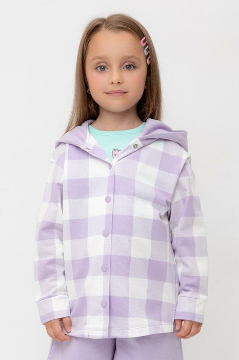 Crockid рубашка для дев КР 302698/пастельно-лиловый,клетка виши к541