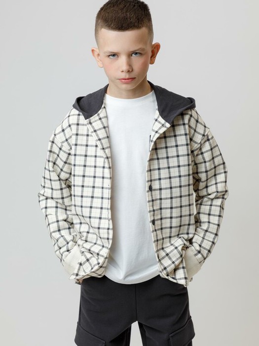 Свободная трикотажная рубашка для мальчика из мягкого петельчатого футера. В составе 80% натурального хлопка и 20% полиэстера, при этом полиэстер ввязан внутрь по особой технологии и не соприкасается с кожей. Застёгивается на кнопки. Модель с капюшоном и спущенным плечом. Рисунок в клетку выполнен из стойких текстильных гипоаллергенных красителей. Изделие сохраняет цвет и форму после многократных стирок. Все трикотажные полотна производятся в соответствии с нормами швейцарского сертификата ЭкоТекс.