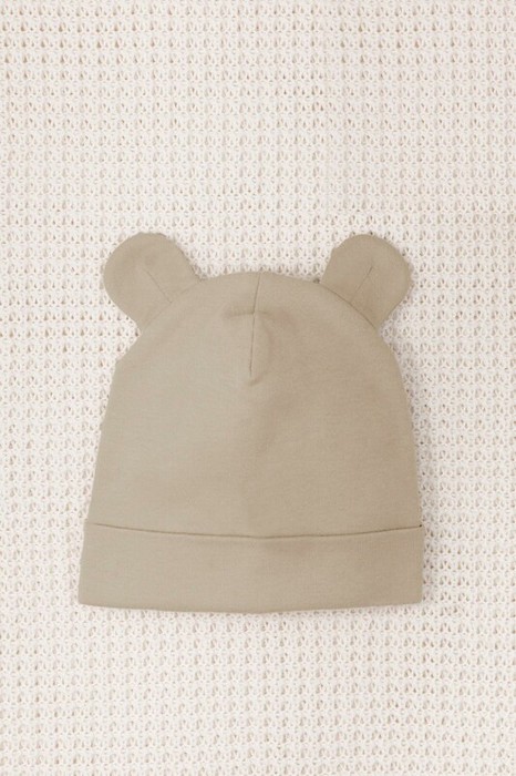 Шапка с отворотом для новорождённых из мягкого эластичного трикотажа интерлок, произведённого из натурального хлопка. Украшена декоративными ушками. Все трикотажные полотна производятся в соответствии с нормами Швейцарского сертификата ЭкоТекс.