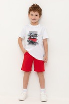 Легкие трикотажные шорты для мальчика из высококачественного хлопка. Эластичный пояс регулируется при помощи шнурка.