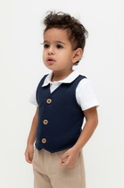 Жилет школьный для девочки. Произведен из мягкого трикотажного футера трёхнитки. В составе 80% натурального хлопка и 20% полиэстера, при этом полиэстер ввязан внутрь по особой технологии и не соприкасается с кожей.