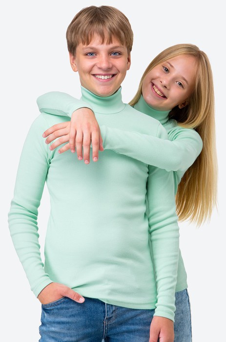Однотонная мятная водолазка легко впишется в повседневный гардероб осенью и весной. Базовая водолазка хорошо сочетается с любым низом и подойдет для многослойных весенних и осенних образов.