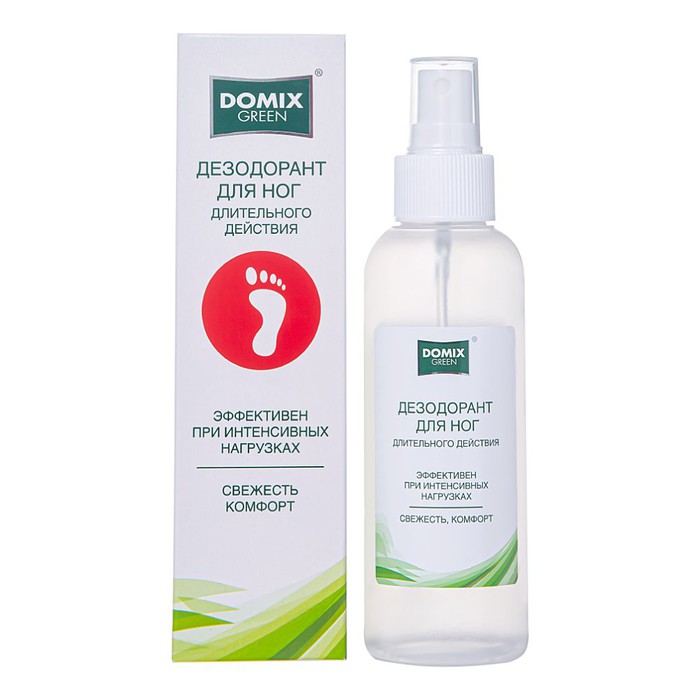 Дезодорант для ног "Domix Green" устраняет причину проблемы - убивает микроорганизмы, не позволяя им размножаться и, тем самым, выделять неприятный запах. После нанесения на кожу образуется тонкая неосязаемая нанопленка, обеспечивающая длительное антибактериальное воздействие. Обладает подсушивающими и дезодорирующими свойствами.