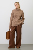 Джемпер прямого кроя, выполнен из трикотажного ворсистого полотна серого цвета. Характеристика: прямой крой, воротник стойка, застежка центральная планка на петли-пуговицы, по низу платная чуть заужена, рукав втачной, манжет широкий. Длина рукава от края горловины 78см, длина изделия по спинке 51см.