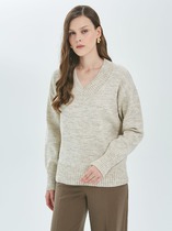 Джемпер укороченный прямого свободного кроя. Выполнен из мягкого трикотажа светло-серого цвета. Горловина-стойка, в естественную складку. Есть подплечники (съёмные). Длина рукава от линии втачивания 61 см. Длина спинки 50 см