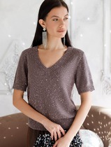 Джемпер с V вырезом и коротким рукавом из хлопковой пряжи с пайетками