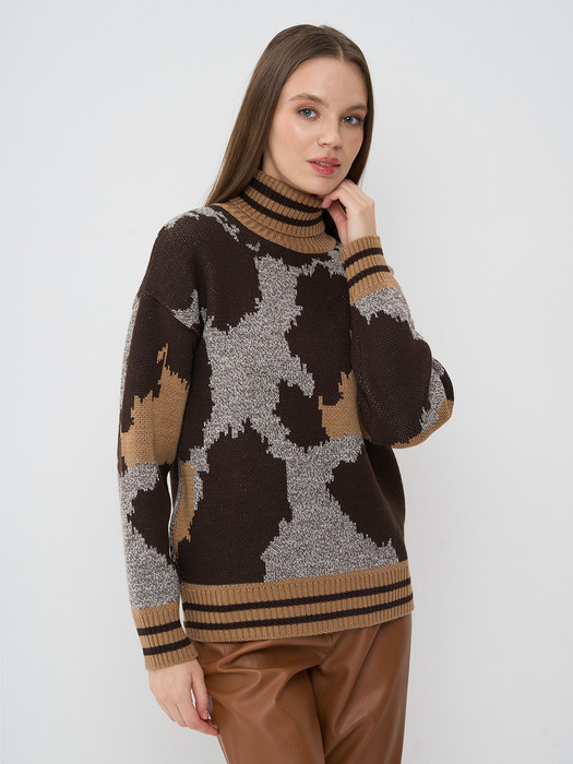 Джемпер NewVay 7242-40290 горький шоколад/карамельный кофе/беж-св.серый