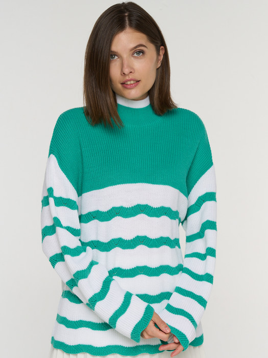 Джемпер NewVay 9242-94079 деликатный зелёный/белый