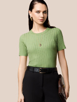 Vilatte Джемпер тонкой вязки из вискозы с нейлоном D39.318 зеленый