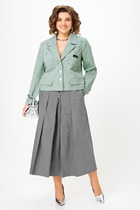 Стильный трикотажный джемпер из трикотажного полотна, модель полуприлегающего силуэта. Горловина лодочкой, рукав декорирован рюшей из основной ткани.