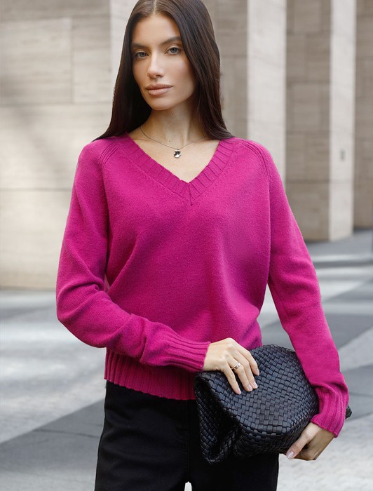 Состав: 52%ПАН (акрил) 33%ПЭ 8%ПУ 7%Кашемир Плотность: 9 GG Размер товара на первом фото: 42Невероятно женственный джемпер цвета фуксия с V вырезом связан из высококачественной пряжи с кашемиром — идеальное сочетание мягкости и практичности. Пряжа с кашемиром придаёт ему бархатистую нежность и тонкую структуру, каждое прикосновение с которой, напоминает о тепле и уюте в прохладные дни. Благодаря нежной текстуре материала этот вариант отлично подходит даже для чувствительной кожи, не вызывая раздражения и дискомфорта в течение дня. Сдержанный, элегантный силуэт джемпера подчёркивает вкуc обладательницы, а филигранная отделка ворота — внимание к деталям. Яркий оттенок и изящная мягкость делают его идеальным выбором в любой ситуации. Широкие манжеты и нижний край добавляют аккуратности, а продуманная посадка делает повседневный джемпер удобным для многослойных образов — от офисного комплекта, например, в сочетании с блузкой, до расслабленного уикенда. Свободный крой джемпера идеально подходит для женщин, которые ценят удобство и стиль одновременно, а так же идеально подходит на большие размеры. Благодаря качественной пряже свитер сохраняет форму и внешний вид даже после многократных носок. Практичный фасон идеально подходит для работы в офисе или встреч с друзьями. Благодаря классическому крою джемпер гармонично сочетается практически с любыми элементами гардероба, помогая всегда выглядеть актуально. Сочетается в костюме с брюками D38.013, D38.012 и юбкой D36.016