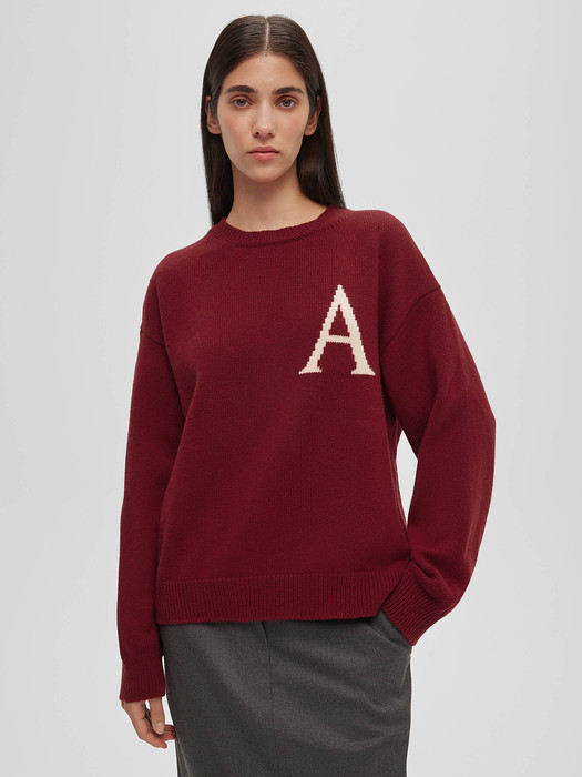 Джемпер выполнен в колледж-стиле и украшен вывязанной буквой "А" с использованием техники "интарсия". Его универсальная модель включает спущенную линию плеча, круглый вырез горловины и резинки на рукавах и по низу, что обеспечивает комфортную посадку для любой фигуры.