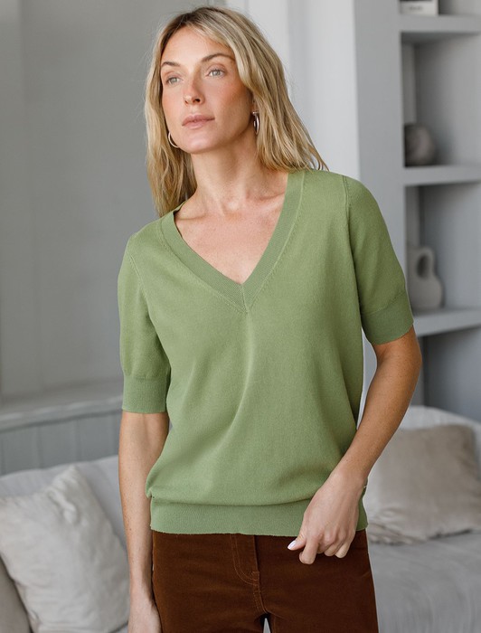 Состав: 83%Вис 17%ПА Плотность: 12 GG Параметры модели на первом фото: Рост 170, бюст 83, талия 64, бедра 88 Размер товара на первом фото: 42Джемпер тонкой вязки выполнен из вискозы с нейлоном. Модель с V-вырезом свободного силуэта. Мягкая очень приятная к коже пряжа не колется, хорошо держит форму и гарантирует комфорт во время носки в течение всего дня. Изделие дополнено фирменным металлическим логотипом бренда.