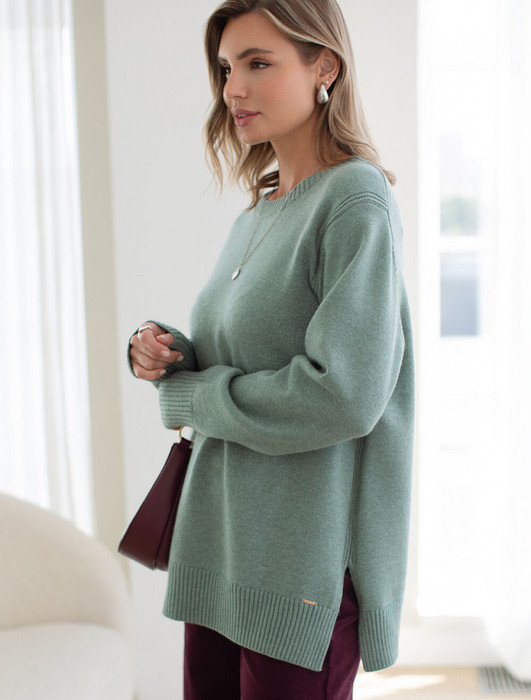Джемпер с круглым воротом выполнен из мягкой меланжевой пряжи с кашемиром. Лаконичная модель свободного силуэта дополнена боковыми разрезами. Мягкая пряжа очень приятная к телу, поддержит комфорт на протяжении всего дня. Сочетается в костюме с брюками D38.013, D38.012 и юбкой D36.016