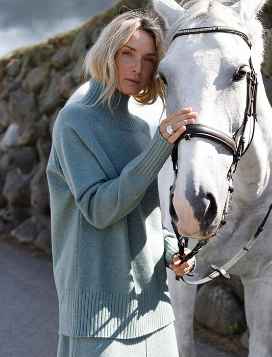 Джемпер с воротом стойка выполнен из мягкой пряжи с кашемиром. Модель свободного силуэта с рукавом реглан будет стильно сочетается с брюками и джинсами. Мягкая пряжа очень приятная к телу, поддержит комфорт на протяжении всего дня, при этом не перегревая. Сочетается в костюме с брюками D38.013, D38.012 и юбкой D36.016