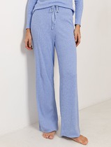 Прямые брюки с поясом на резинке из фактурного трикотажа в рубчик