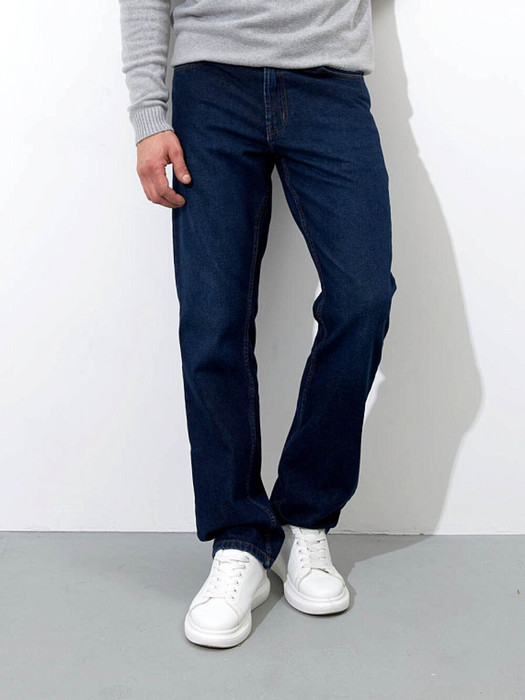 Мужские классические джинсы с пятью карманами. Эта модель выпускактся уже более  25-ти лет и все годы пользуется неизменной популярностью у наших покупателей. Посадка Regular fit (полуоблегающие по бедру), высокая талия, немного заужены к низу. Застежка на молнии. Выполнены из слабоэластичной ткани denim comfort stretch. Классическая темная стирка  "stone wash".