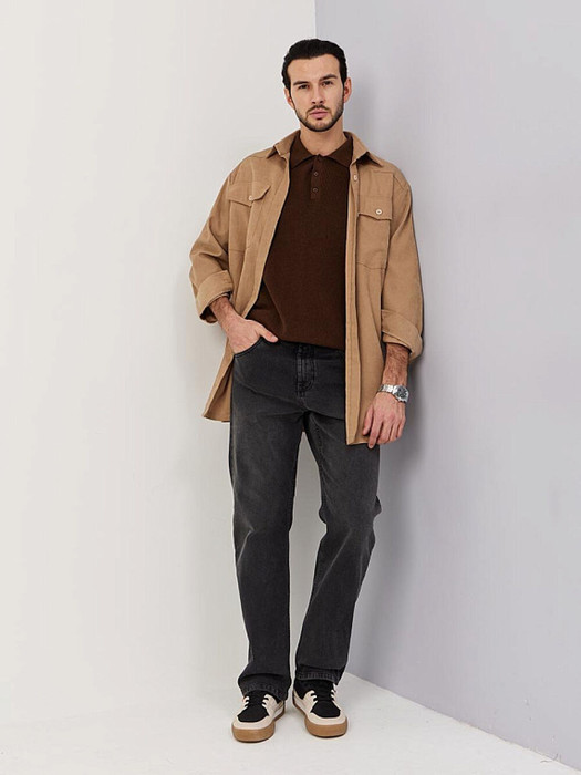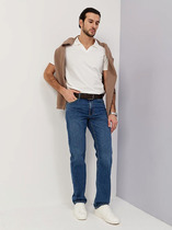Мужские классические джинсы с пятью карманами. Посадка Comfort fit (свободные по бедру), широкие в колене и по низу, высокая талия. Застежка на молнии. Выполнены из слабоэластичной ткани denim comfort stretch, цвет ткани Black/Black (лицевая и изнаночная стороны ткани черные). Темная стирка с потёртостями и "усами" спереди и потёртостями сзади.