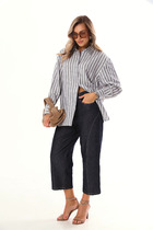 Комфортные плотные брюки из джинсовой ткани свободнго объёма от бедра с подворотами по низу, которые позволяют регулировать длину брюк.