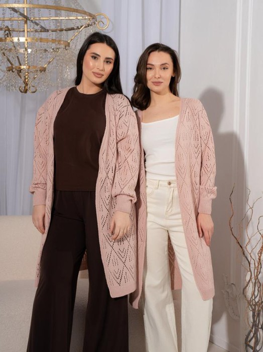 Совместные покупки Симферополь Женская одежда Кофты, кардиганы — ESENIA Кардиган женский удлиненный Ажур 2 - Пудрово-розовый