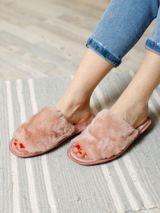Совместные покупки Симферополь Женская обувь Домашняя обувь — ESENIA Тапочки из мутона на твердой тапочной подошве - Пыльная роза