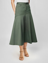 09.04 Vilatte Юбка-годе из хлопка D26.198 темно-оливковый
