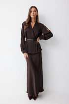 Модель прямая, длинная, внизу сзади небольшой разрез (картинку можно посмотреть на сайте производителя)
