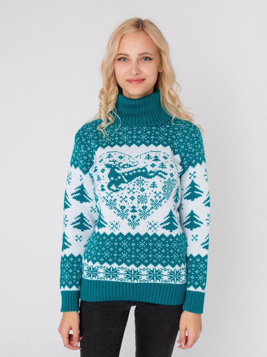 Совместные покупки Симферополь Женская одежда Джемперы, свитеры, водолазки — ESENIA Водолазка женская полушерстяная Олени - Изумруд