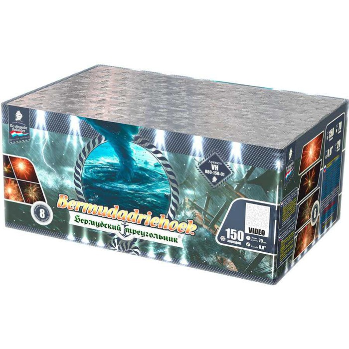 1. Рубиновые и изумрудные звезды с белыми хвостами, с переходом в серебряные мерцающие шары. 2. Шары из золотых вспыхивающих искр и рубиновых мерцающих огней. 3. Залпы из золотистых пальм, красных и зеленых звезд. 4. Мощный завершающий залп из всех эффектов, с переходом в облака трещащих золотых искр.