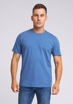 Базовая однотонная мужская футболка прямого силуэта без принта. Выполнена из трикотажного полотна: хлопкового с добавлением лайкры. Горловина округлой формы с усилителем горловины спинки.