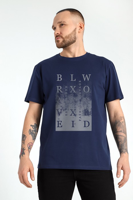 Футболка мужская из гладкокрашеного трикотажного полотна "кулирка" с лайкрой, классическогоь покроя, с коротким втачными рукавами, горловиной овальной формы, обработанной втачной планкой и принтом на полочке, выполненным в технике шелкографии.