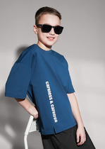 Трикотажная футболка с эффектом тай-дай, декорированная яркой нашивкой на груди. Прямой крой, круглый вырез горловины, короткие рукава с отворотами.На ребенке представлен размер 110:- Ширина изделия по линии груди 32,5 см- Ширина по низу изделия 34 см- Длина изделия 39 смРазница между размерами составляет 1,5 см.