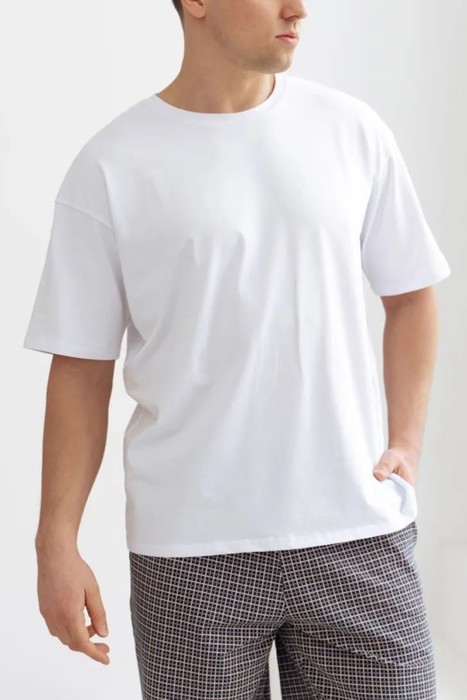 Классическая мужская футболка с коротким рукавом. Вырез горловины круглый.