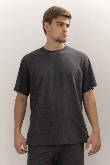 Классическая футболка свободного прилегания с коротким рукавом и круглым вырезом горловины из рибаны. Футболка дополнит образ к шортам и брюкам данной коллекции, а так же любым поясным