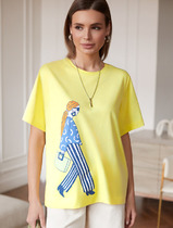 Футболка прямого свободного кроя. Выполнена из хлопкового полотна серого цвета. Вырез горловины круглый. Рукав втачной, спущенный. Длина рукава от линии втачивания 17 см. Длина спинки 71 см