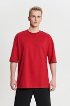 Футболка прямого свободного кроя, выполнена из трикотажного полотна молочного цвета. Характеристика: прямой крой, овальная горловина. Рукав спущен. Спинка цельнокраеная, по переду напечатан принт. Длина спинки 68см, длина рукава от края горловины 41см.