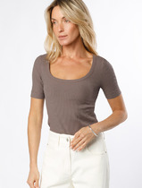 09.04 Vilatte Футболка из трикотажа в широкий рубчик D49.066 кофейный