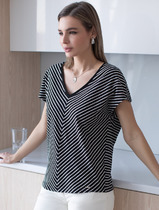 Футболка из гладкокрашеного трикотажного полотна «кулирка с лайкрой» классического покроя, с короткими втачными рукавами, горловиной V-образной формы, обработанной втачной планкой и принтом на полочке.