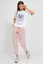 Майка женская полуприлегающего силуэта выполнена из вискозы. Горловина круглая с притачной планкой украшена съемной цепочкой, рукав втачной короткий. Длина майки- 62 см.