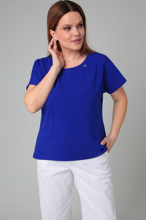 Футболка свободного кроя со спущенной линией плеча, удлинённой спинкой. Имеются декоративные элементы. Р-р 50-54 Длина по переду от плеча 60 см. (+-1 см) Р-р 56-60 Длина по переду от плеча 65 см. (+-1 см) Рекомендации по уходу: Ручная или машинная стирка до 30° Химчистка Отжим до 800 оборотов Гладить на средних температурах